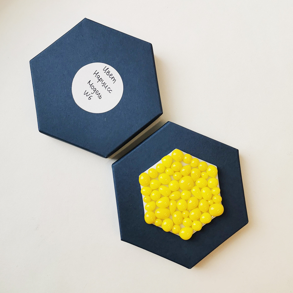 Шестигранная стеклянная подставка для художественных инструментов от Vasuri Glass. Рассчитана на один инструмент. Компактная и удобная в использовании, подставка украсит ваш стол и защитит его от капель туши и краски. Размер: длина 65 мм, ширина 55 мм, высота 6 мм. Ручная работа. Каждая подставка упакована в шестигранную коробочку. Подставки ручной работы Vasuri Glass выпекаются в стекольной мастерской в Санкт-Петербурге.