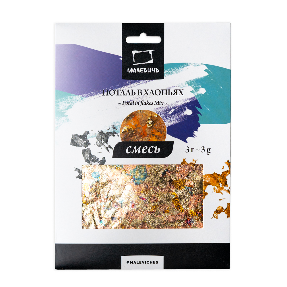Поталь «Малевичъ» в хлопьях – это тонкие кусочки фольги для декора, чтобы придать любому изделию уникальный и яркий вид. Поталь в хлопьях отлично подходит для декорирования различных изделий из гипса, дерева, глины, украшений. С поталью можно экспериментировать на холсте, бумаге, с эпоксидной смолой. Поталь ровно ложится на поверхность, не образует комочков, помогает создать эффект кракелюра или состаривания. Поверхность необходимо сначала обезжирить, нанести клей для потали, пинцетом или кистью нанести хлопья потали, дать просохнуть и затем покрыть специальным лаком. Для работы с поталью рекомендуем использовать только специальные клей и лак, чтобы фольга не потускнела и не потеряла свой цвет.