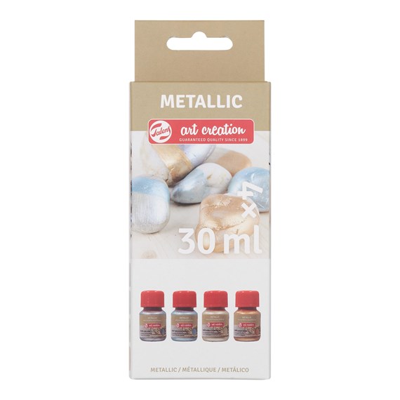 Быстросохнущая краска с эффектом металлик предназначена для декорирования изделий из различных материалов — дерево, пластик, гипс и прочее. Легкая кремовая консистенция красок отлично подойдет для прорисовки даже самых мелких деталей. Перед нанесением убедитесь, что поверхность чистая, сухая и обезжиренная. После высыхания образует водонепроницаемую поверхность. Подходит для использования только внутри помещений.