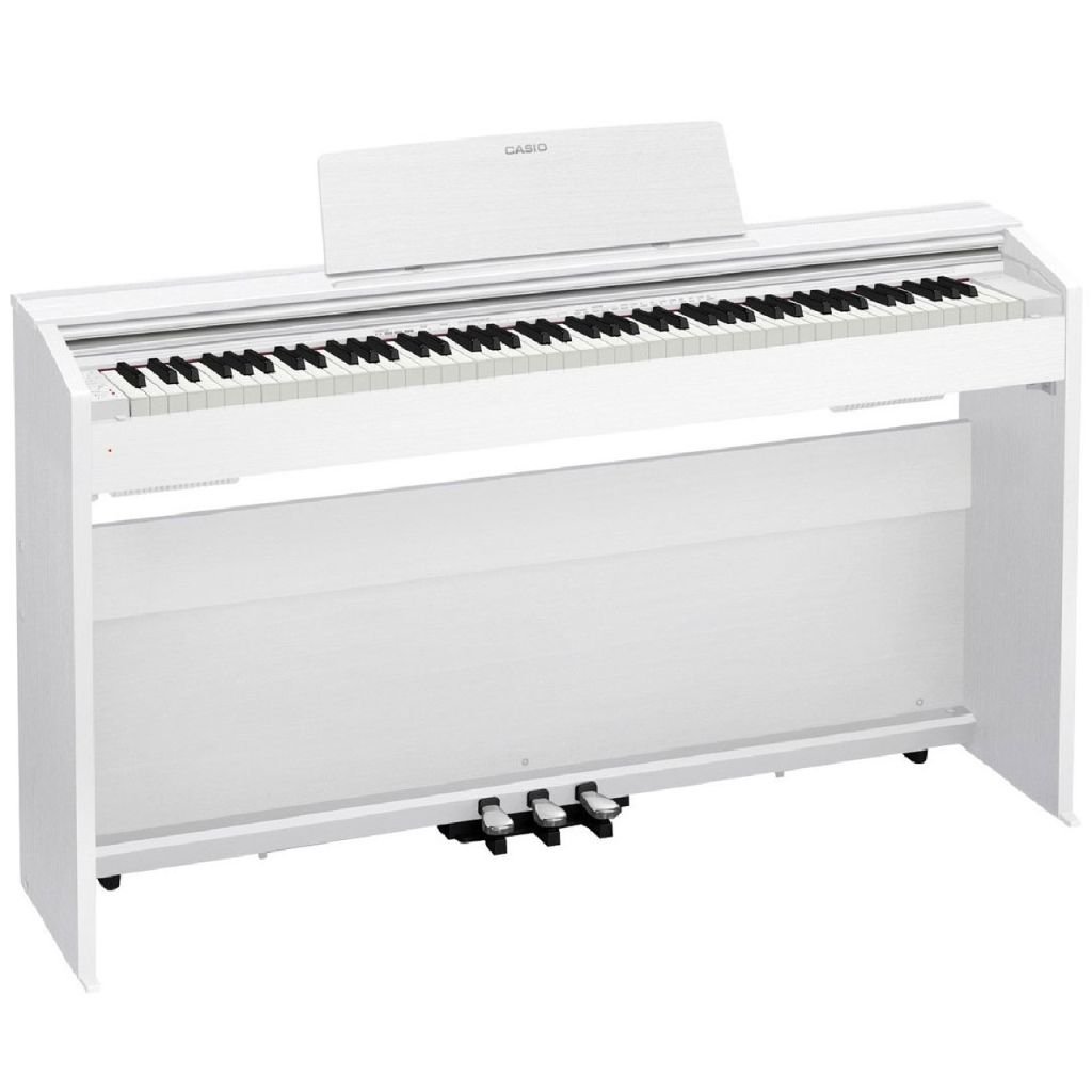 Цифровое пианино Casio Privia PX-870 WE: неизменное качество от известного производителяЦифровое пианино марки Casio Privia PX-870 имеет 19 тембров различных инструментов (например, концертный рояль, орган, электропиано, модернпиано). Предусмотрена библиотека из 60 композиций, с помощью которых можно обучаться игре на инструменте или просто прослушивать, полифония на 256 голосов.Модель позволяет записывать произведения собственного сочинения, так как имеет встроенное звукозаписывающее устройство на 2 дорожки (записывается 1 песня). В целом, устройство может записать около 5 тысяч нот.Исполняя музыкальные произведения на цифровом пианино Casio Privia PX-870, вы сможете использовать различные акустические эффекты и приёмы. Играя одно и то же произведение, вы можете услышать, как бы оно звучало, например, в немецкой церкви или французском кафедральном соборе. Casio Privia PX-870 открывает для музыкантов и ещё одну удивительную возможность – игры с симфоническим оркестром. Преимуществом является наличие звуковых нюансов – демпферного и струнного резонанса, шума демпферов и пр.Помимо уже перечисленных достоинств Casio Privia PX-870, можно также выделить отличное качество сборки, приятную текстуру клавиш (слоновая кость/чёрное дерево), изящный дизайн.Дополнительные функцииИзменение чувствительности клавиш (3 уровня).Наложение тембров.Настройка звукового ряда (17 предустановленных ладов).Транспонирование (2 октавы).Разделение клавиатуры.Выбор партии обучения для левой и правой рук.Метроном.2 выхода под наушники.USB-порт.Встроенные динамики (2 по 20Вт).Доступные цвета:Casio Privia PX-870 ВК (чёрный);Casio Privia PX-870 WE (белый);Casio Privia PX-870 BN (коричневый).