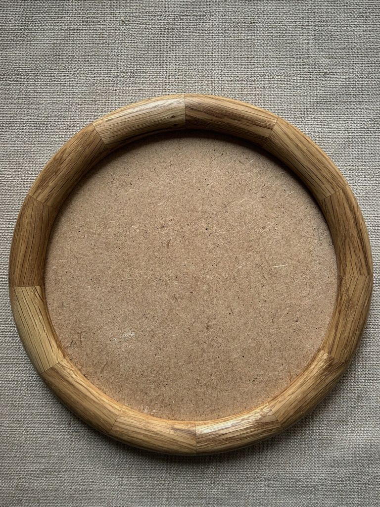 Каждая рамка KK-home изготавливается вручную в России из настоящего дерева. В серию вошли изделия из дуба, ореха, ясеня, акации, карагача и дрифтвуда. Внутри рамки две жёстких подложки, используйте их для регулирования уровня прилегания работы или фотографии (в зависимости от их толщины). Фронтальную подложку можно также использовать в роли холста для акрила. Рамка фиксируется специальными креплениями на гвоздиках. Потяните их на себя, чтобы извлечь. Также сзади расположена аккуратная петелька для подвешивания. В линейке три вида диаметров: 10, 15 и 17 см. Внешний вид рисунка на дереве и его оттенок могут немного отличаться — это натуральное дерево.