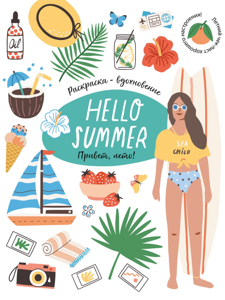 Перед вами летняя раскраска - Hello Summer. Мы собрали самые яркие летние события и приключения! Душевные пикники на природе, долгие лесные прогулки, стильные уличные фестивали, летние виды спорта, веселые походы, морские приключения, много мороженого и освежающих лимонадов. Раскрашивайте вместе с детьми, следуйте чек листу и создавайте настроение своими руками. Удобно брать с собой! Идеальный подарок!