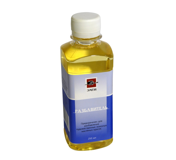 Разбавитель масляный ЭМТИ. Представляет собой смесь отбеленного рафинированного льняного масла и уайт-спирита с добавлением кобальтового сиккатива. Применяется для разбавления быстросохнущих масляных красок. Объем: 250 мл.
