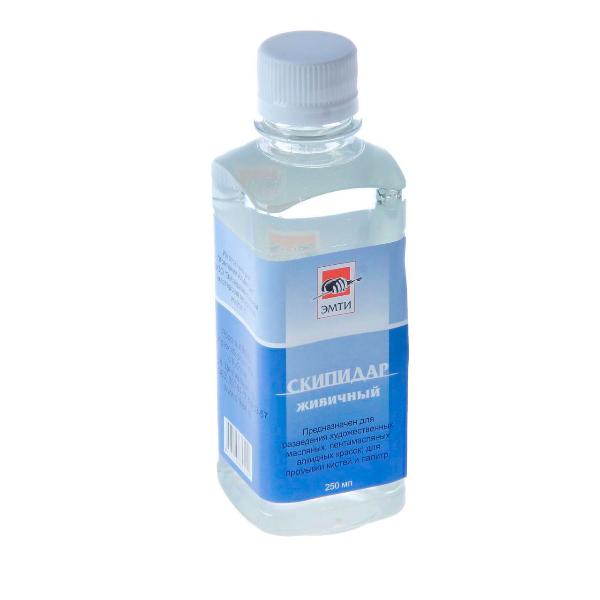 Скипидар живичный ЭМТИ. Применяется для разведения масляных красок. Из-за высокой степени окисления скипидар склонен к пожелтению и осмолению. Скипидар получают из живицы хвойных пород дерева. Объем: 250 мл.