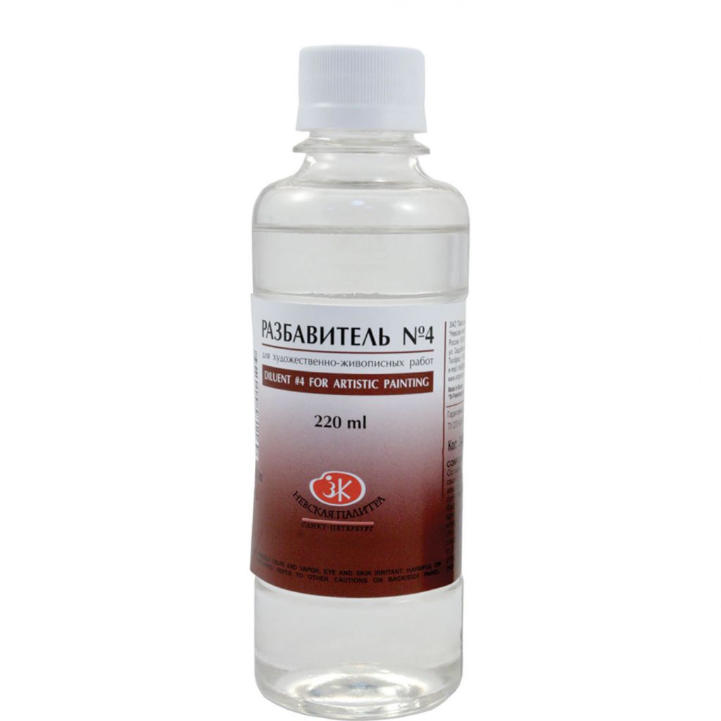 Разбавитель №4 Пинен "Невская палитра". Предназначен для разведения художественных масляных, пентамасляных, алкидных красок и разбавления лаков. Состав: пиненовая фракция живичного скипидара. Объем: 220 мл.