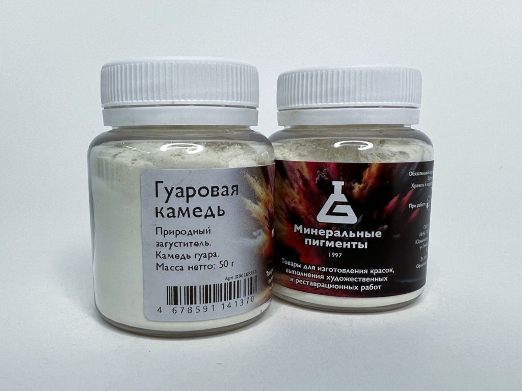Гуаровая камедь представляет собой природный неионогенный полисахарид (галактоманнан), который выделяют из семян гуарового дерева Cyamopsis tetragonoba (гороховое дерево), которое выращивается в Индии и Пакистане. Гуаровая камедь часто используется в сочетании со многими другими смолами, в особенности с ксантановой камедью - проявляет синергию. Например, смеси гуаровой и ксантановой камеди имеют намного более высокую вязкость, чем по отдельности, и используются для стабилизации вод гуммиарабика. Используется как фиксирующий агент для жиров и масел, как уплотнитель для водных составов, и даже как связующий агент при производстве водных красок. Снижает температуру замерзания водных составов.