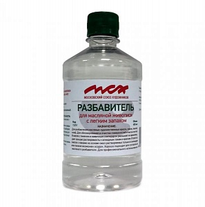 Разбавитель для масляной живописи МСХ. Используется для разбавления художественных масляных красок, лаков, эмалей и олиф. Для очистки и обезжиривания поверхности, а также для мытья кистей и других инструментов. Объем: 450 мл. Имеет легкий запах.