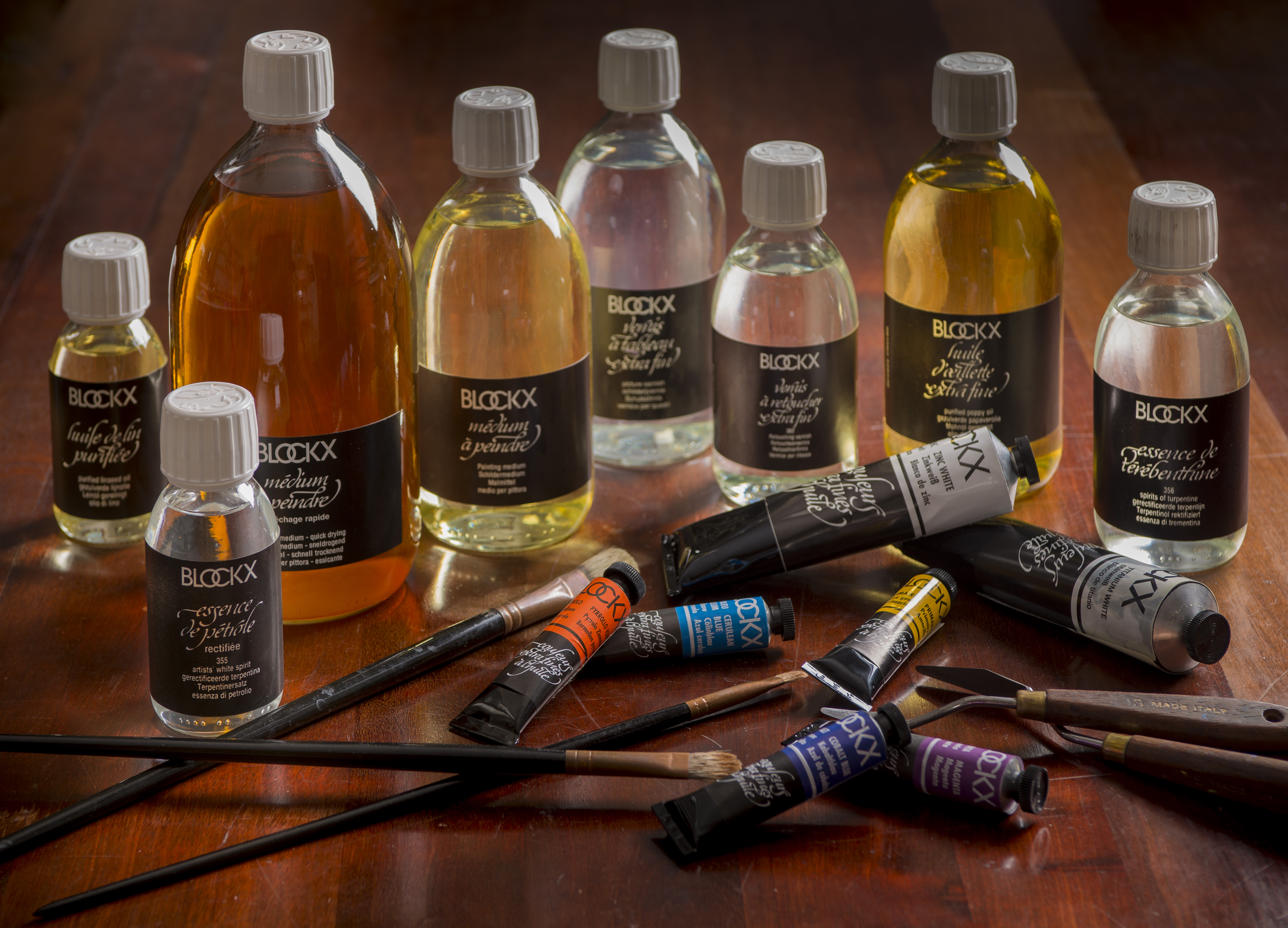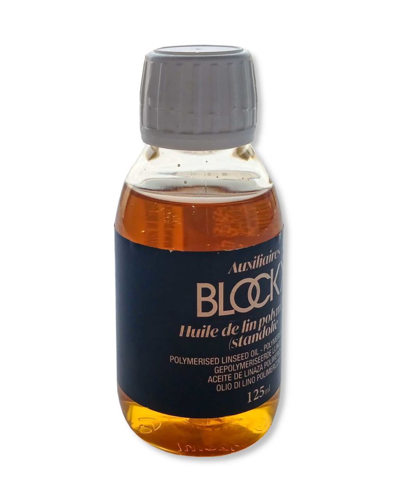 Благодаря специальной обработке полимеризованное льняное масло становится непроницаемым для воды и газов, фактически превращаясь в лак. Также полимеризация устраняет тенденцию льнянего масла к пожелтению, поскольку отвечающий за это свойство линоленовый глицерид становится крайне устойчивым к химическим изменениям смолистым веществом. После высыхания образует прочную пленку, не деформирующую красочный слой. Масло увеличивает яркость красок и широко используется для коррекции потускневших участков. Вспомогательные средства Blockx были разработаны с учётом особых требований к цвету и высоко ценятся за отличное качество и широкий ассортимент.