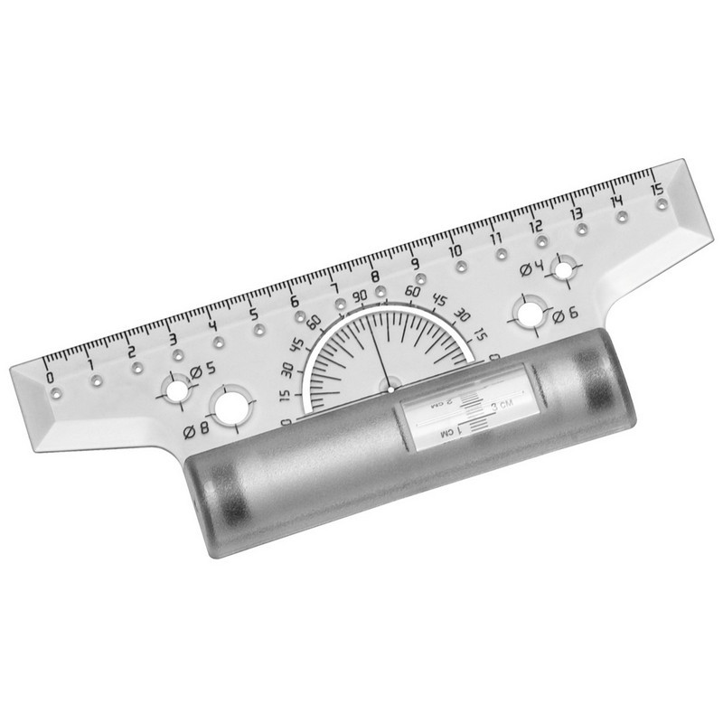 Линейка-рейсшина Стамм предназначена для черчения. Имеет пластиковый ролик. Равномерно перемещается по бумажной поверхности. Содержит транспортир 180 градусов и трафареты окружностей. Изготовлена из сертифицированного полистирола. Длина разметки 15 см. Цвет товара может отличаться.