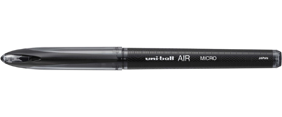 Роллер Uni-Ball Air Micro 0,5 мм это ручка, в которой для письма используется не стержень, а баллончик, утопленный в корпус и заполненный пигментными чернилами, с инновационным пишущим узлом uni-ball AIR на конце. В отличие от распространённых шариковых ручек, в которых пишущим материалом является чернильная паста, в роллерах UNI Mitsubishi используются запатентованные пигментные чернила, стойкие к воздействию света и воды. Благодаря меньшей вязкости чернила лучше и быстрее впитываются, что позволяет данным ручкам оставлять более красивый след, схожий со следом перьевой ручки. Шарик пишущего механизма роллера Uni-Ball Air Micro имеет размеры 0,5 мм в диаметре. Обновленная конструкция наконечника Uni-Ball Air позволяет регулировать интенсивность и толщину письма, в зависимости от силы нажатия и угла, а так же минимизирует трение и контакт с бумагой, обеспечивая сенсационно плавное письмо, свободное и без шума (даже на шероховатой бумаге). Роллер Uni-Ball Air Micro 0,5 мм идеально подходит для каллиграфии и леттеринга. Новая ручка роллер выполнена в стильном черном дизайне. Корпус выполнен из высококачественного пластика. Чернильный баллон и пишущий механизм надежно запаяны, что предотвращает протечку.
