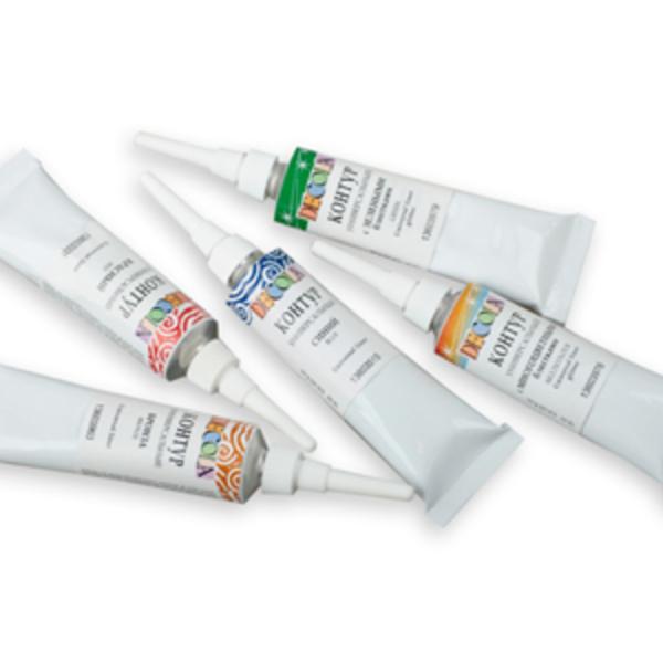 Универсальные контуры «Decola» изготавливаются на основе водной акриловой дисперсии. Широко используются для создания декоративных эффектов при работе с мелкими деталями и объемными рисунками. Применяются на различных поверхностях, таких как дерево, фарфор, стекло, металл, ткань, холст. Не позволяют краскам смешиваться друг с другом, что помогает создать чёткие границы. Универсальные контуры «Decola» для удобства пользования оснащены конусообразным сменным носиком и предлагаются в удобных тюбиках объемом по 18 миллилитров. представлено 25 различных цветов, в том числе металлик и перламутровые оттенки. Универсальные контуры «Decola» производятся заводом художественных красок Невская палитра, расположенным в городе Санкт-Петербурге. Завод уже более 80 лет выпускает продукцию для профессиональных художников и любителей творчества.