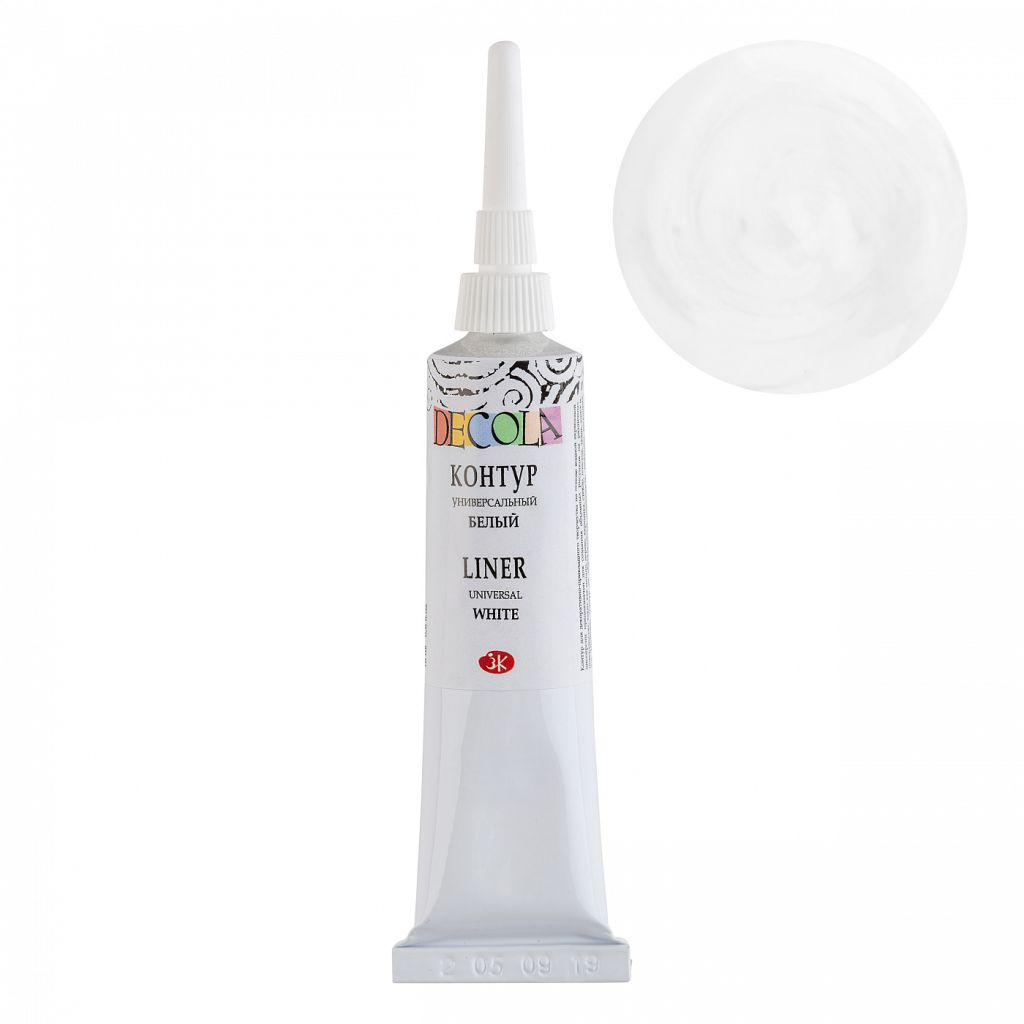 Контуры универсальные «Decola» производятся заводом художественных красок Невская палитра, расположенным в городе Санкт-Петербурге. Завод уже более 80 лет выпускает продукцию для профессиональных художников и любителей творчества. Контуры универсальные «Decola» изготавливаются на основе водной акриловой дисперсии. Широко используются для создания декоративных эффектов при работе с мелкими деталями и объемными рисунками. Применяются на различных поверхностях, таких как дерево, фарфор, стекло, металл, ткань, холст. Не позволяют краскам смешиваться друг с другом, что помогает создать чёткие границы. Контуры универсальные «Decola» для удобства пользования оснащены конусообразным сменным носиком и предлагаются в удобных тюбиках объемом по 18 миллилитров. представлено 25 различных цветов, в том числе металлики и перламутровые оттенки.