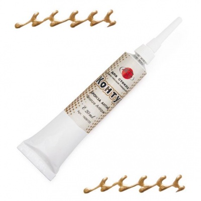 Контур использует для нанесения контура рисунка, надписей, завершающих штрихов, а также в качестве тонкой кисти. Предназначен для создания контурных и точечных рисунков на стекле и керамических поверхностях. Обладает высокой рельефностью и хорошо держат форму. Контур по стеклу и керамике широко применяют и на других поверхностях, таких как дерево, пластик, кожа, металл и т.д. Объем: 20 мл. Цвет: металлик.