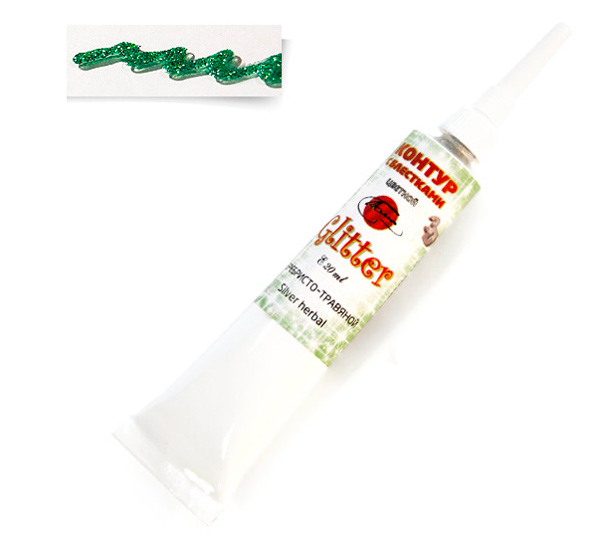 Контур универсальный с блестками "Глиттер" используется для линейных или точечных рисунков практически по любой поверхности. С помощью контура можно создавать эффектные контурные рисунки, которые будут красиво переливаться на свету. Контур прекрасное дополнение к витражной росписи, декору в технике декупажа, а также эффектное украшение ваших творческих работ к различным праздникам: к Новому году, Рождеству, к Пасхе, Свадебному торжеству. Объем: 20 мл.