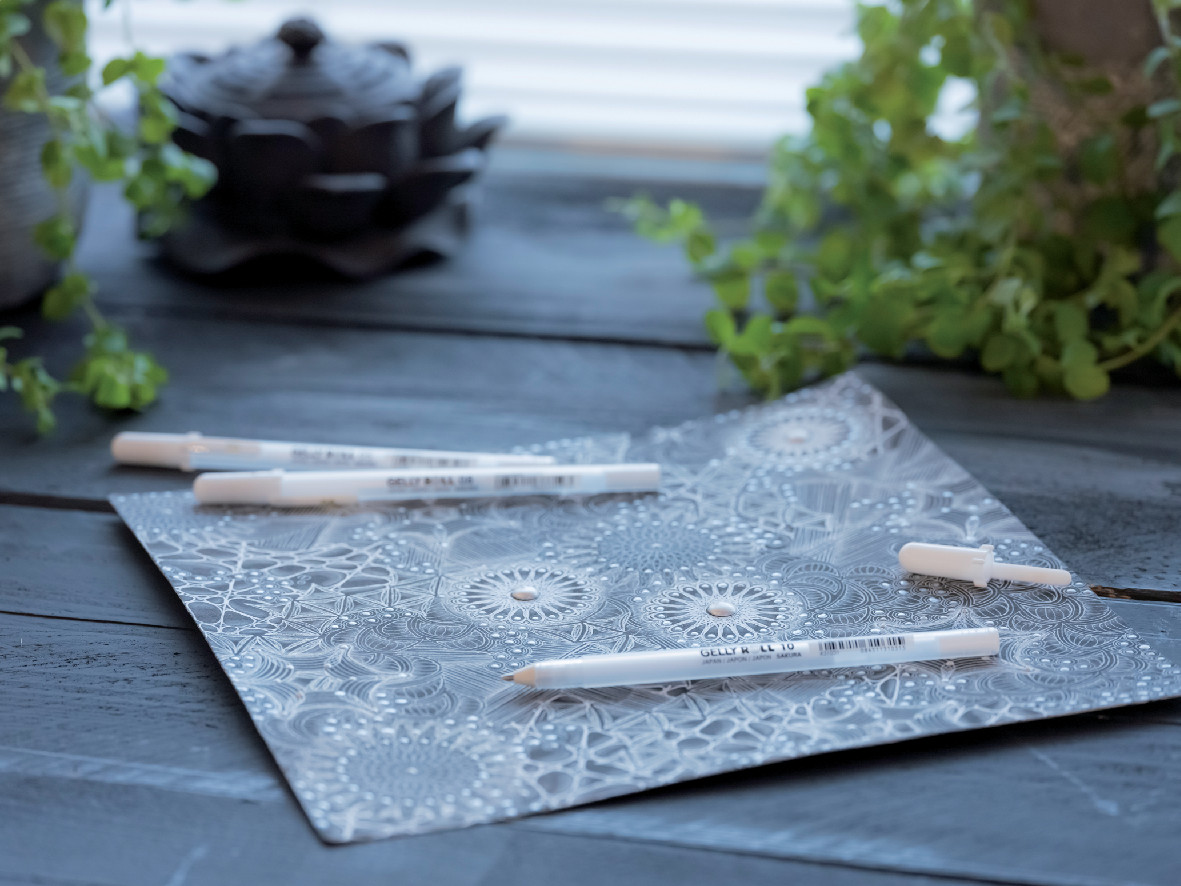 Ручки Sakura Gelly Roll содержат запатентованные чернила PIGMA INK, которые обеспечивают насыщенный цвет, влагостойкость и устойчивость к выцветанию (работы, сделанные этими чернилами, могут храниться до 100 лет). Чернила быстро сохнут, не смазываются и не протекают на обратную сторону листа на большинстве типов бумаги. Ручки предназначены как для повседневного использования, так и для декоративного письма при оформлении открыток, приглашений и прочих оформительских работ. Чернила отлично ложатся как на матовые, так и на глянцевые скользкие поверхности, устойчивы к воздействию света и влаги, не токсичны. Серия представлена ручками с различной толщиной пишущего узла поштучно и в наборах.