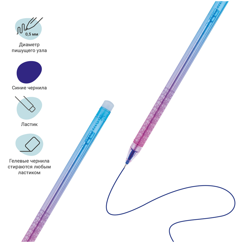 Гелевая стираемая ручка Meshu Rainbow станет ярким атрибутом отличного настроения на работе или учёбе. Изделие обладает необычным ярким дизайном. Гелевые чернила не только ярко пишут на бумаге, но и при воздействии температуры становятся невидимыми – достаточно потереть написанное ластиком на кончике ручки. Обесцвеченные чернила проявляются при низкой температуре. Диаметр пишущего узла составляет 0,5 мм, благодаря чему ручка прекрасно подойдёт для любого стиля письма. Толщина линии составляет 0,3 мм. Благодаря чернилам синего цвета ручку можно использовать в работе или учёбе на постоянной основе. Чернила сменные, что говорит о долговечности изделия. Для этого товара отсутствует возможность выбора цвета корпуса, он будет случайным. Цена указана за 1 штуку.