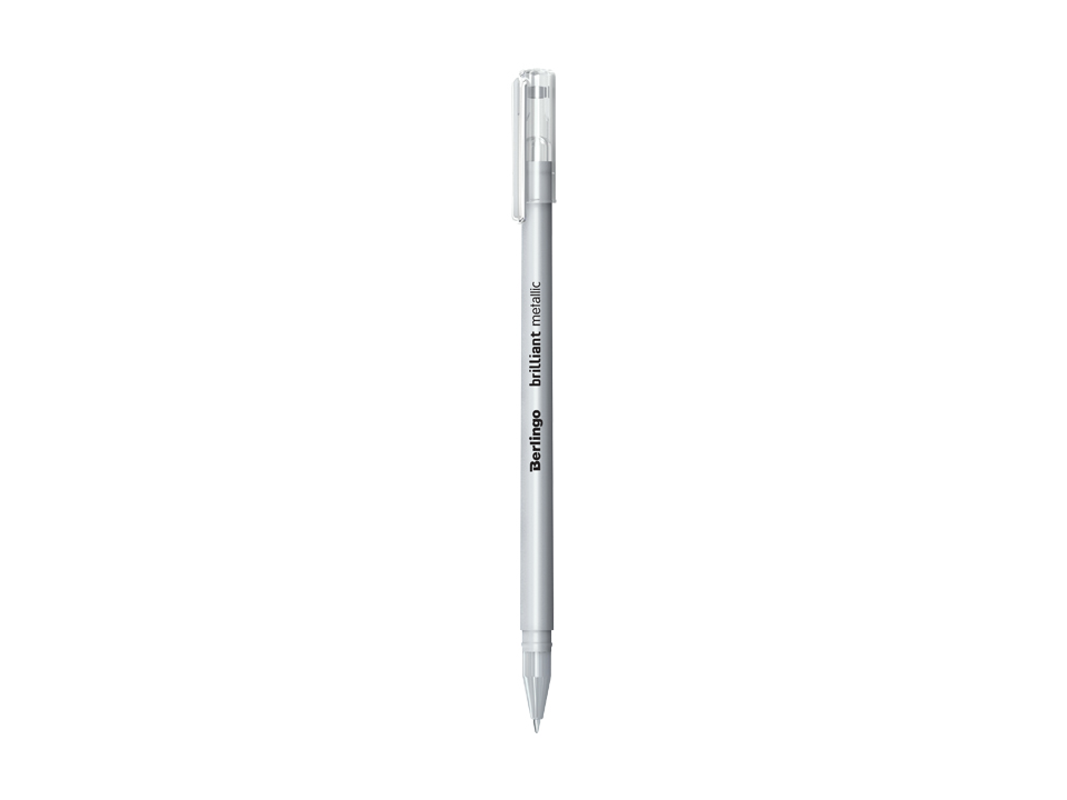 Ручка гелевая Berlingo "Brilliant Metallic", серебро с эффектом металлик. Утончённый корпус с бархатистым покрытием soft-touch, прозрачный колпачок с клипом. Цвет корпуса соответствует цвету чернил. Корейские водо- и светостойкие чернила. Оптимальный диаметр пишущего узла – 0,8 мм – для мягкости письма и насыщенности цвета. Подходит для использования на чёрной бумаге.