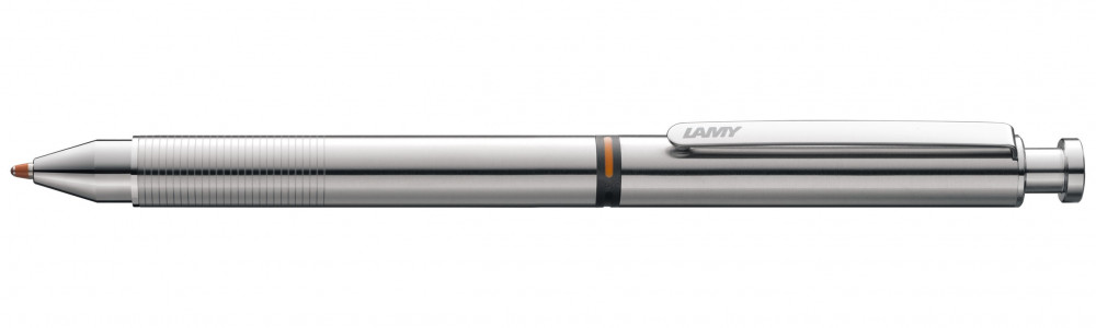 Необычайно тонкий и изящный пишущий инструмент Lamy St цилиндрической формы в тонком корпусе, выполненном из полированной нержавеющей стали, с немного изогнутым упругим клипом. В стандартной комплектации в ручке идет черный и красный шариковый стержень и карандаш диаметром 0,5 мм. При необходимости вы можете заменить их на нужные стержни Lamy M21.