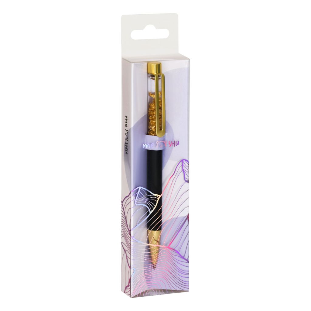 Шариковая ручка MESHU – это привлекательный аксессуар для ярких, смелых и успешных. Диаметр пишущего узла: 1 мм. Ручка подойдёт для мягкого и быстрого письма. Золотой корпус ручки из металла с черным матовым эффектом украшен вставкой с золотой поталью и дополнен металлическим клипом, с помощью которого ручку можно закрепить на одежде или ежедневнике. Изящные и плавные линии, декоративные детали станут неотъемлемой частью праздничной и радостной атмосферы. Ручка оснащена поворотным механизмом, что говорит о надёжности и безопасности изделия, Стержень не повредится в сумке и не оставит следов на посторонних предметах. Благодаря чернилам синего цвета ручку можно использовать в работе или учёбе на постоянной основе.