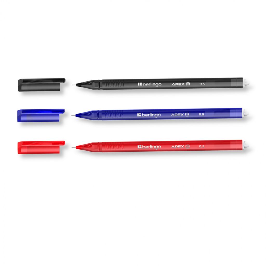 Одноразовая стираемая гелевая ручка с колпачком с пластиковым клипом Berlingo Apex E - это удобная трёхгранная форма и качество чернил. Цвет чернил соответствует цвету корпуса. Диаметр пишущего узла составляет 0,5 мм, благодаря чему получается тонкая, аккуратная линия. Толщина линии письма составляет 0,3 мм, длина непрерывной линии - свыше 350 метров. Рифление в зоне захвата препятствует скольжению пальцев при письме. Тонированный корпус позволяет контролировать расход чернил. Качественные гелевые чернила обеспечивают чистое и чёткое письмо. Термочувствительные чернила становятся невидимыми при нагревании до 60°С и выше. Нагрев достигается трением встроенным в торцевой элемент ластиком. Обесцвеченные чернила проявляются при температуре ниже -18°С . Возможность многократного стирания и написания текста. Количество циклов написания/стирания ограничено износостойкостью бумаги.