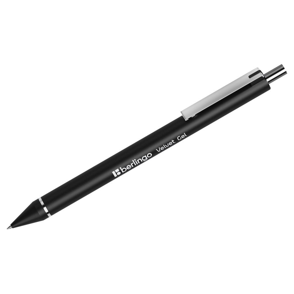 Гелевая автоматическая ручка Berlingo Velvet gel с представлена в строгом монохромном корпусе с надежным металлическим клипом. Цвет чернил - чёрный. Диаметр пишущего узла составляет 0,5 мм, благодаря чему получается тонкая, аккуратная линия. Инновационные чернила мгновенно высыхают на бумаге и абсолютно не мажут, благодаря чему ручка объединяет преимущества шариковых (пишет аккуратно и тонко) и гелевых (пишет мягко и ярко) моделей, а также подходит для левшей. Бархатистое soft touch покрытие препятствует скольжению пальцев и создаёт дополнительный комфорт. Кнопочный механизм подачи стержня добавляет удобства при использовании ручки.