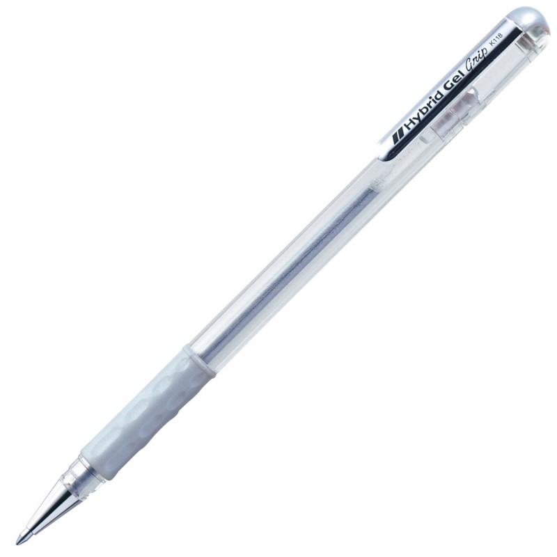 Pentel Hybrid gel Grip — это линейка декоративных гелевых ручек с гибридными чернилами разных цветов. Металлический пишущий механизм позволяет создавать аккуратные тонкие линии, которые прекрасно подойдут для украшения открыток, писем, сувениров и приглашений. Эти ручки незаменимы для выделения заголовков в конспектах или создания красочных заметок на полях. Тонкий прозрачный корпус ручки Pentel Hybrid gel Grip изготовлен из прочного пластика, что позволяет контролировать остаток чернил. Так же ручка имеет цветные вставки, выполненные в тон чернил, инновационный состав которых, защищает надписи от воздействия света и влаги. Зона захвата на корпусе ручки снабжена прорезиненным грипом для предотвращения выскальзывания ручки во время письма. Надписи сделанные ручкой Pentel Hybrid gel Grip идеально смотрятся на бумаге тёмных расцветок, в том числе чёрной.