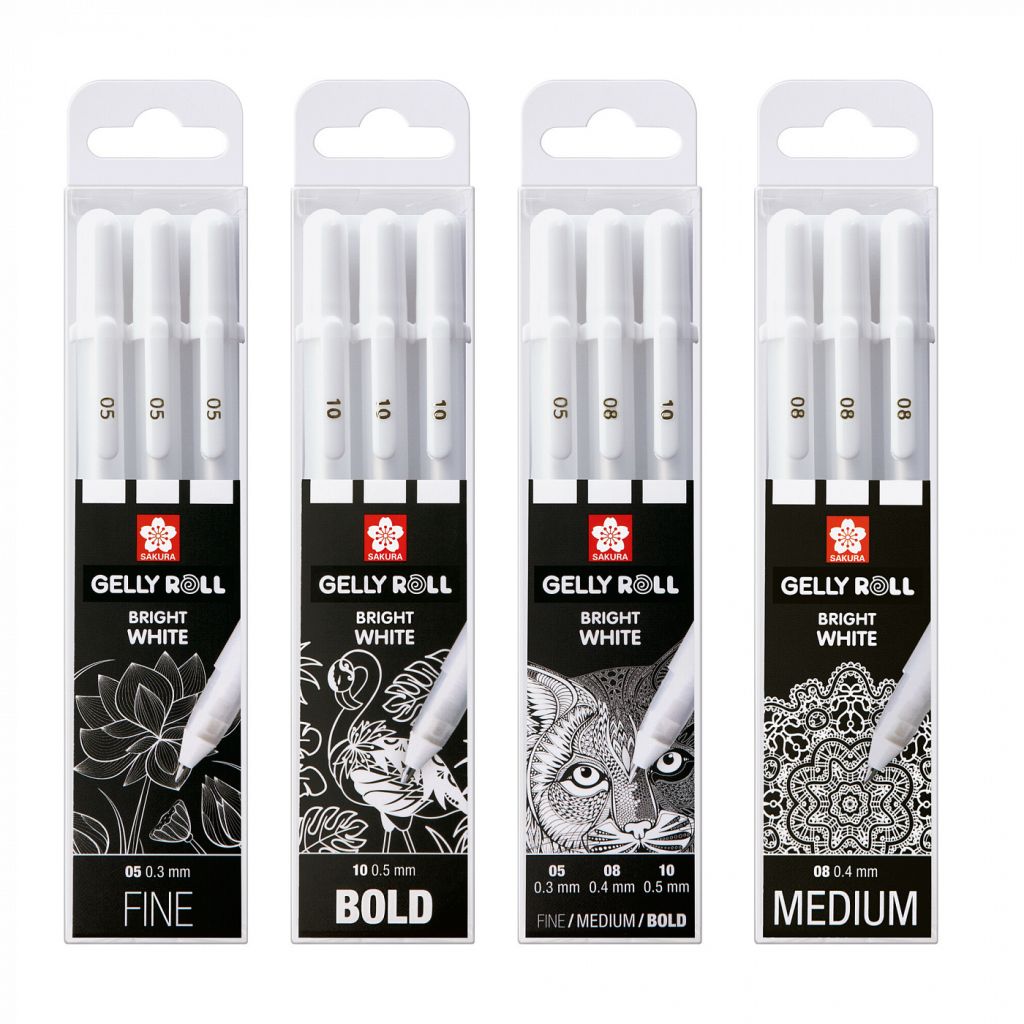 Ручки Sakura Gelly Roll содержат запатентованные чернила PIGMA INK, которые обеспечивают насыщенный цвет, влагостойкость и устойчивость к выцветанию (работы, сделанные этими чернилами, могут храниться до 100 лет). Чернила быстро сохнут, не смазываются и не протекают на обратную сторону листа на большинстве типов бумаги. Ручки предназначены как для повседневного использования, так и для декоративного письма при оформлении открыток, приглашений и прочих оформительских работ. Чернила отлично ложатся как на матовые, так и на глянцевые скользкие поверхности, устойчивы к воздействию света и влаги, не токсичны. Серия представлена ручками с различной толщиной пишущего узла поштучно и в наборах.