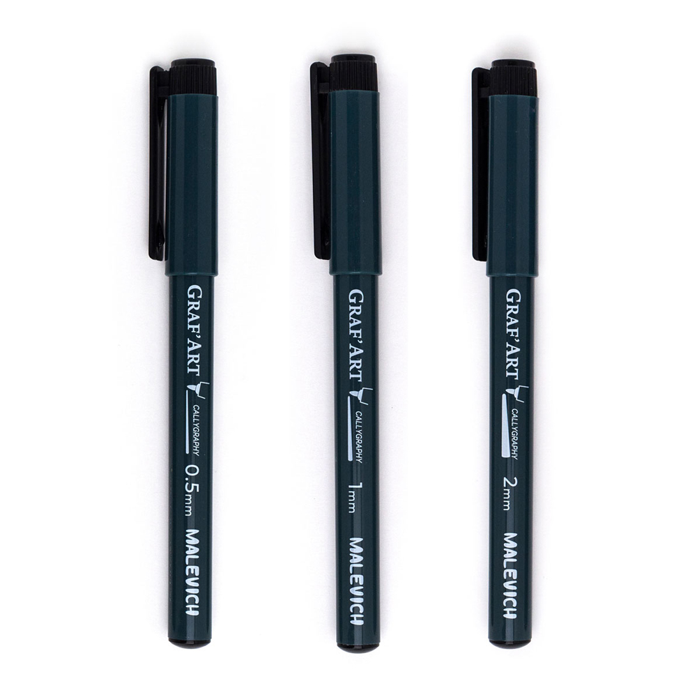 Капиллярные ручки «Малевичъ» Graf'Art — это универсальный инструмент для письма, рисования и черчения. Высококачественные чернила отлично пишут на бумаге любого типа, чернила не растекаются и не протекают на обратную сторону листа. После высыхания чернила обладают высокой степенью светостойкости, работы выполненные такими чернилами не выцветают со временем. Чернила водостойкие, что обеспечивает возможность их использования с красками и маркерами на водной основе. В наборе представлен 3 ручки Graf'Art с наконечниками различной толщины.