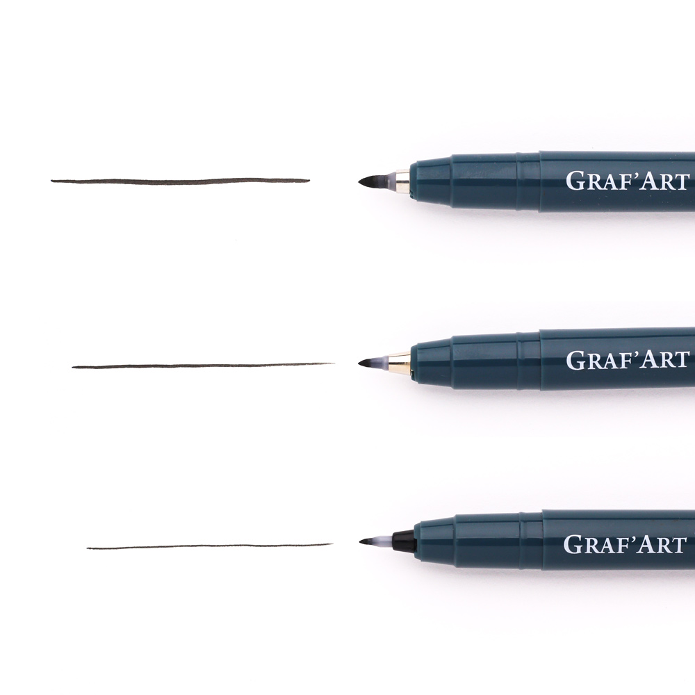 Капиллярные ручки Малевичъ "Graf'Art" — это универсальный инструмент для письма, рисования и черчения. Высококачественные чернила отлично пишут на бумаге любого типа, чернила не растекаются и не протекают на обратную сторону листа. После высыхания чернила обладают высокой степенью светостойкости, работы выполненные такими чернилами не выцветают со временем. Чернила водостойкие, что обеспечивает возможность их использования с красками и маркерами на водной основе. Градация размеров: S-0.5 мм. L-1 мм. M-2 мм.
