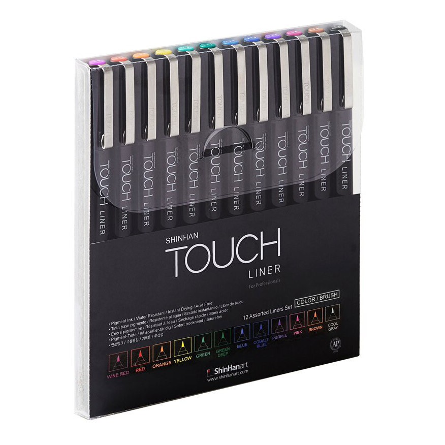 О серии: линеры "Touch Brush" имеют гибкий наконечник, позволяющий делать как тонкие, так и широкие линии, в зависимости от силы нажатия. Они содержат чернила на пигментной основе, которые имеют насыщенный цвет, высокую светостойкость, а также являются водостойкими, бескислотными, не содержат вредных химических веществ и не имеют запаха. В набор входит 12 линеров разных цветов с гибким наконечником. Применение: для графических и оформительских работ, иллюстрации и леттеринга. Производство: компания из Южной Кореи «ShinHan Art International Inc» славится своей продукцией, предназначенной для иллюстраторов, аниматоров, дизайнеров и архитекторов. Компания была основана в 1967 году и на тот момент называлась «Haneel». Сегодня «ShinHan Art International Inc» славится во всем мире превосходным качеством своей продукции. Особенностью данной марки является внимание к деталям и дизайну. Применение современных технологий и следование традициям производства, позволяют создавать эргономичные, удобные и сверхнадежные канцелярские принадлежности. Продукция компании используются в различных сферах и популярна среди профессиональных художников, а также любителей творчества и хобби.