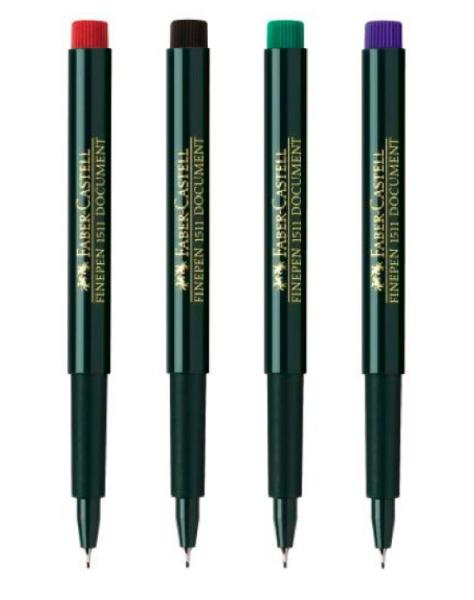 Капиллярная ручка (линер) Fineliner 1511 от немецкого производителя Faber-Castell идеально подходит для письма и черчения. Документарные водостойкие чернила, используемые при производстве ручек, делают надпись и рисунки стойкими и долговечными. Данная ручка идеально подходит для работы с важными документами. Удлиненный пишущий узел в металлической оболочке надежен и очень удобен при работе с линейками и трафаретами. На колпачке имеется пластиковый клип, который позволит прикрепить ручку к ежедневнику или блокноту. Толщина линии составляет 0,4 мм, что позволяет тонко писать.