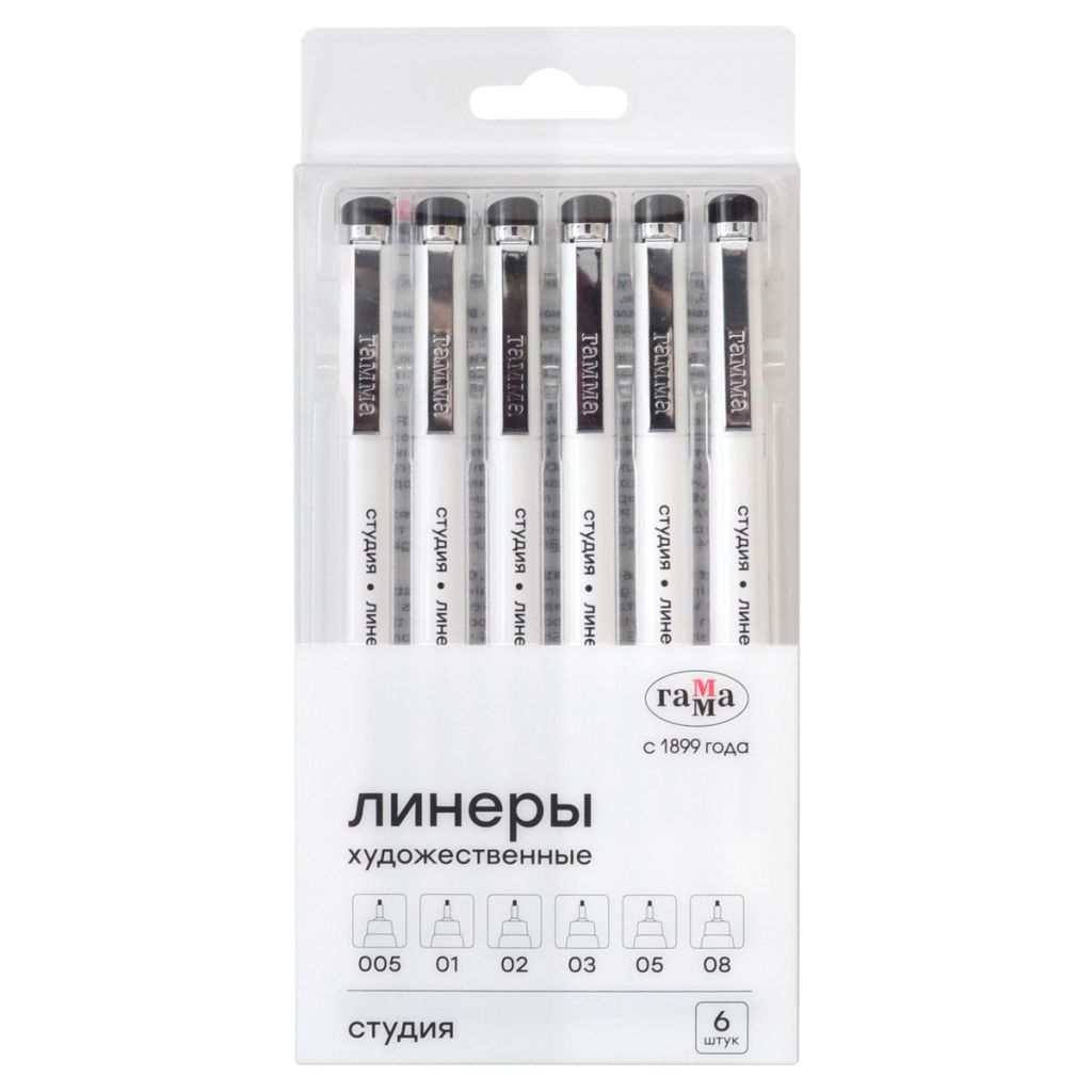 Линеры «ГАММА» серии «Студия» — это профессиональные художественные линеры предназначены для графики, письма, черчения, рисования. Линеры имеют водостойкие архивные чернила с высоким уровнем светостойкости. Рисунок после полного высыхания не растекается и не размываются водой, можно работать в смешанных техниках с акварелью, маркерами и акрилом. Корпус линера выполнен из высококачественного пластика. Колпачки пронумерованы в соответствии с диаметром пишущего узла.