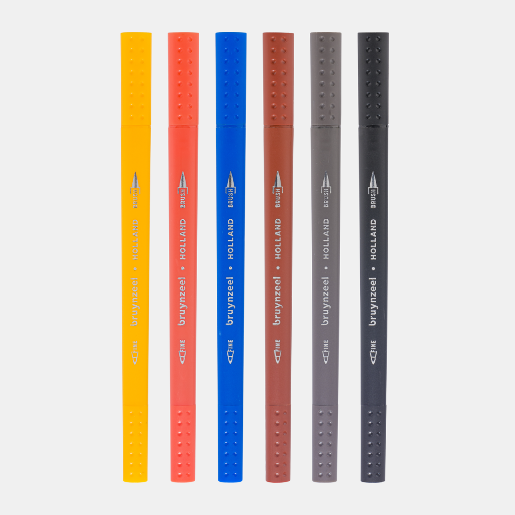 О серии: капиллярные ручки Bruynzeel "Teen" предназначены для графических и оформительских работ, отлично подходят как для рисования, так и для подписания открыток или леттеринга. Чернила на водной основе не содержат кислот и вредных веществ, быстро сохнут и смешиваются между собой для получения новых оттенков. В наборах представлены ручки с двумя наконечниками — наконечник кисть для плавных продолжительных линий и тонкий фетровый наконечник толщиной 0,4 мм. для точной работы. Серия представлена наборами различной комплектации. Производство: изготавливается компанией Bruynzeel, которая была основана в Роттердаме (Нидерланды) 1 августа 1897 года. Изначально компания производителя дизайнерскую мебель, а затем и школьные парты. Только спустя года компания начала производить карандаши. Привлекая лучших специалистов того времени карандаши начали пользоваться активным спросам благодаря хорошему качеству. На протяжении последних десятилетий фабрики братьев Bruynzeel производят художественные товары, которые по праву можно считать одними из лучших в Европе.