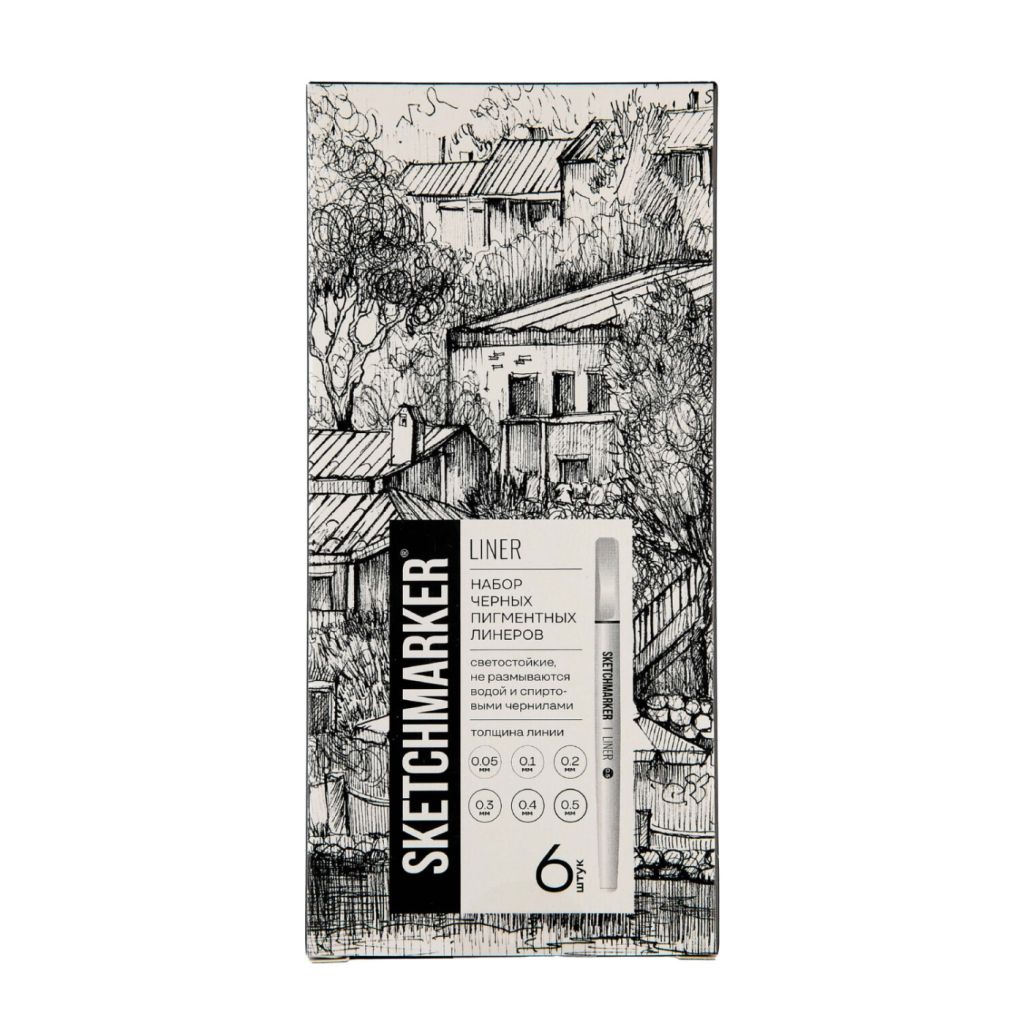 Черные линеры Sketchmarker – это надежные инструменты для рисования и письма. Пигментные архивные чернила подаются непрерывно, оставляя на поверхности линии насыщенного цвета. Эргономичный корпус удобно лежит в руке. Линеры можно использовать как сами по себе, так и в технике микс-медиа – в сочетании с другими графическими инструментами, спиртовыми маркерами, акварельными красками и т.д. Чернила водо- и светостойкие.