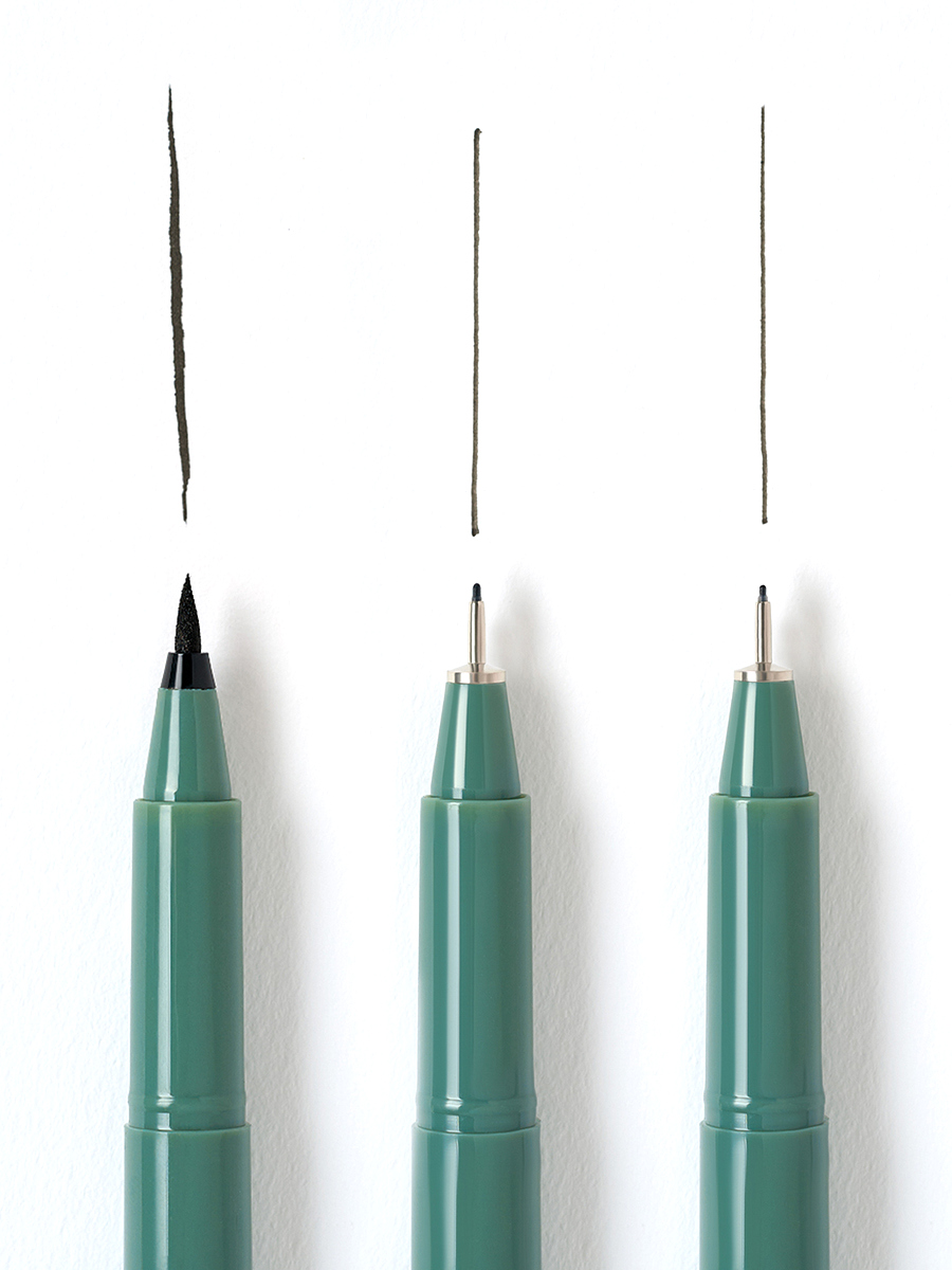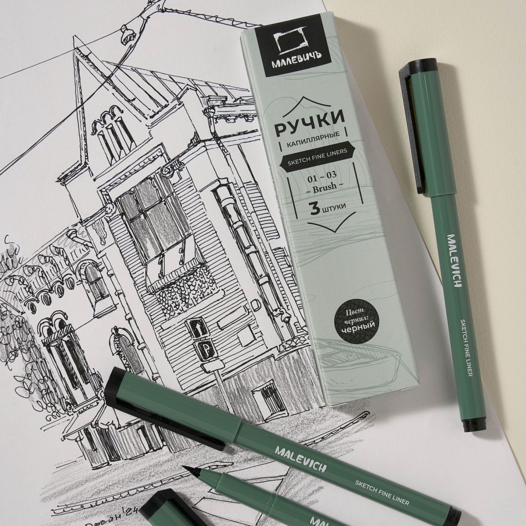 Наборы капиллярных ручек Малевичъ - новая линейка бюджетных линеров. Уменьшенный диаметр корпуса, более легкий пластик, с минималистичным дизайном, в тредновом цвете "мох" В ручках используются специальные водостойкие архивные чернила на пигментной основе с высокой степенью светостойкости и глубоким черным цветом. Рисунок после высыхания не размывается водой и спиртом, линеры можно использовать в смешанной технике с акварелью, акрилом или маркерами. Чернила идентичны линейке Graf'Art в фирменном цвете, ложатся ровно, без пропусков и клякс, быстро сохнут и не размазываются.