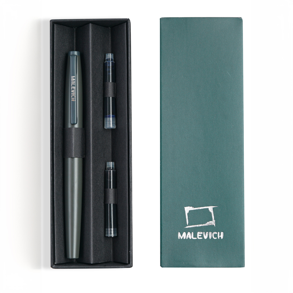 Перьевая ручка с конвертером «Малевичъ» — идеальный выбор для ценителей классических письменных принадлежностей. Дизайн ручки совмещает в себе вековые традиции, современную технологичность и качество. Ручка «Малевичъ» обладает тончайшим пером EF – толщина линии 0,4 мм. Таким пером можно создавать тонкие четкие линии, а почерк будет изящнее. Перо стальное средней жесткости будет удобно и для письма, так и для скетчинга и каллиграфии. Идеально сбалансированная и легкая перьевая ручка Малевич обеспечивает комфорт руки даже при длительном письме. Ручка имеет универсальный поворотный конвертер, который можно легко заправить чернилами, оставляя руки чистыми. Благодаря конвертеру можно быстро и качественно промыть пишущий узел ручки, что важно перед сменой цвета чернил. Чтобы заправить ручку необходимо: Раскрутить корпус ручки, Проверить плотность прилегания конвертера с перьевым блоком, спустить вниз поршень, покрутив верхнюю часть конвертера – таким образом избавиться от лишнего воздуха, Погрузить перо ручки в чернила (перо должно быть погружено в чернила наполовину своей длины), Поднимите поршень – чернила начнут заполнять капсулу конвертера. Если не получилось заправить ручку с первого раза, повторите все действия снова, возможно, нужно погрузить перо чуть глубже (но не утопив корпус). После заправки протрите аккуратно салфеткой излишки чернил. Закрутите корпус и ручка готова. Так как заправка происходит через перо, то не придется ждать поступления чернил на кончик пера, в отличие от использования картриджей.