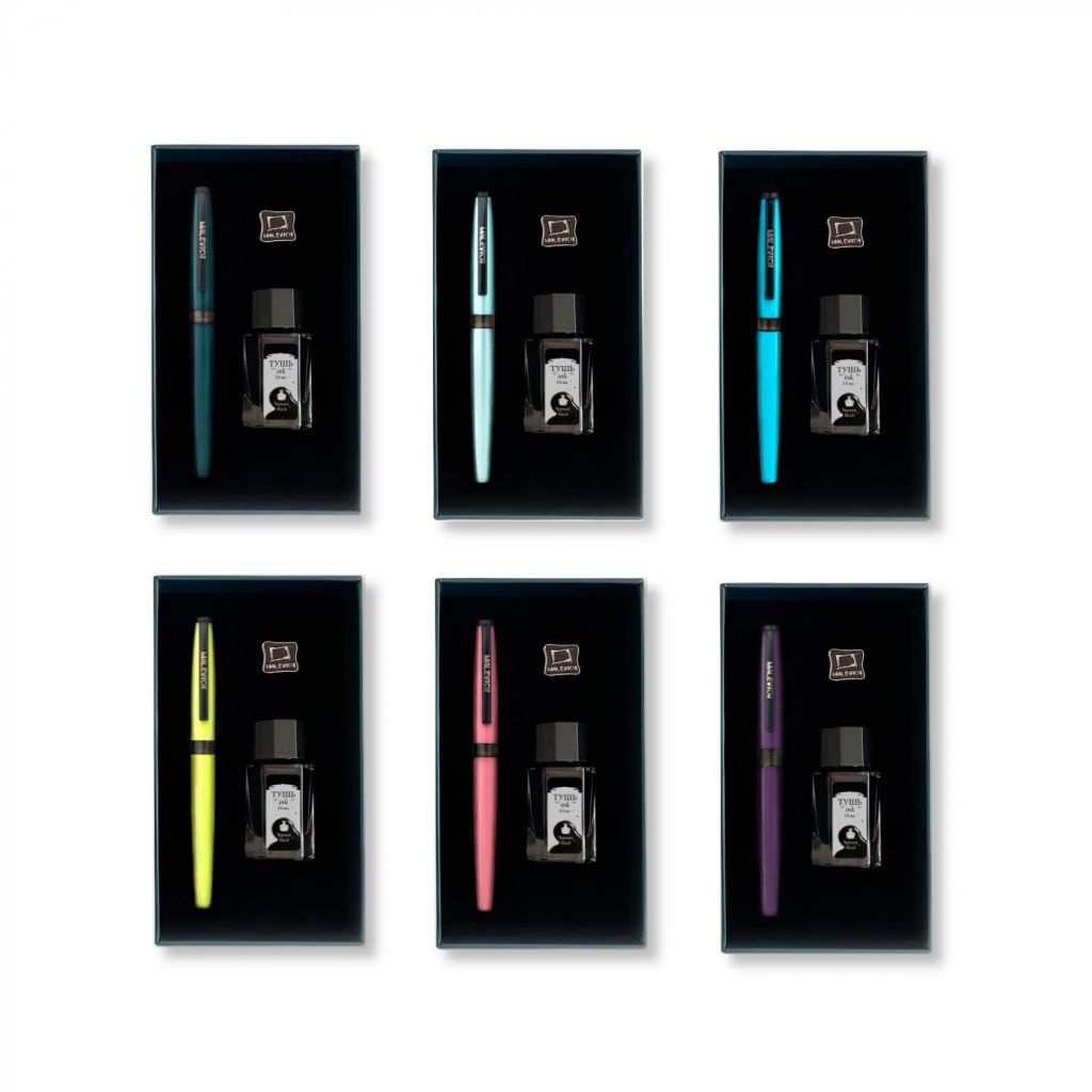 Подарочный набор включает в себя перьевую ручку «Малевичъ», баночку туши 18 мл. чёрного цвета и фирменный значок. Перьевая ручка с конвертером «Малевичъ» — идеальный выбор для ценителей классических письменных принадлежностей. Дизайн ручки совмещает в себе вековые традиции, современную технологичность и качество. Ручка «Малевичъ» обладает тончайшим стальным пером EF средней жесткости – толщина линии 0,4 мм. Таким пером можно создавать тонкие четкие линии, а при письме почерк будет аккуратным и изящным. Идеально сбалансированная и легкая перьевая ручка «Малевичъ» обеспечивает комфорт руки даже при длительном письме. Ручка имеет универсальный поворотный конвертер, который легко заправляется чернилами, оставляя руки чистыми. Благодаря конвертеру можно быстро и качественно промыть пишущий узел ручки, что важно перед сменой цвета чернил. Обратите внимание, ручка поставляется без чернил. Чтобы заправить ручку необходимо: Раскрутить корпус ручки. Проверить плотность прилегания конвертера с перьевым блоком, спустить вниз поршень, покрутив верхнюю часть конвертера – таким образом избавиться от лишнего воздуха. Погрузить перо ручки в чернила (перо должно быть погружено в чернила наполовину своей длины). Поднять поршень – чернила начнут заполнять капсулу конвертера. Если не получилось заправить ручку с первого раза, повторите все действия снова, возможно, нужно погрузить перо чуть глубже (но не утопив корпус). После заправки протрите аккуратно салфеткой излишки чернил. Закрутите корпус и ручка готова! Так как заправка происходит через перо, вам не придется ждать поступления чернил на кончик пера, в отличие от использования картриджей.