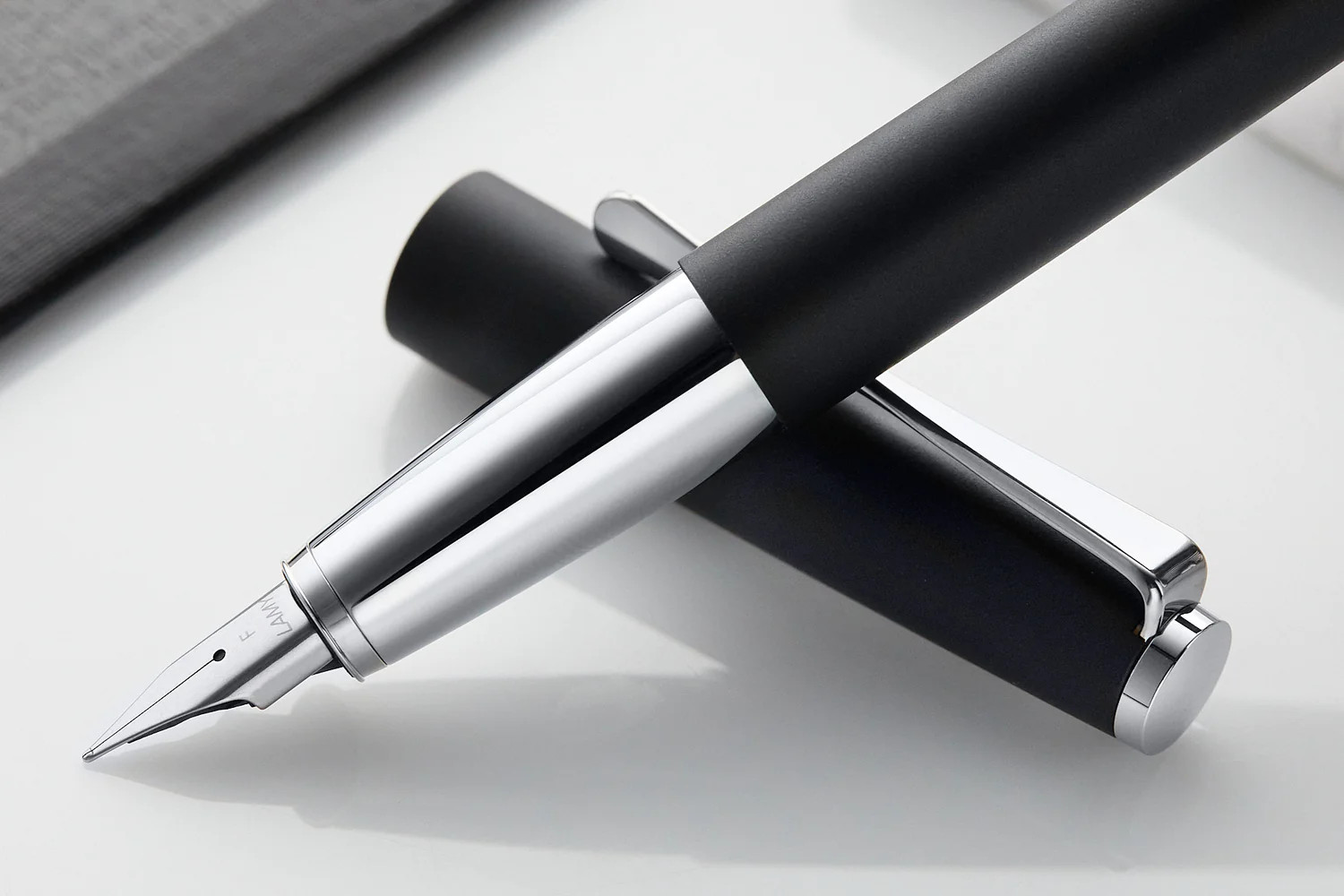 Элегантная коллекция Lamy Studio демонстрирует идеальное сочетание мастерства и дизайнерского искусства. Отличительная особенность коллекции Studio - классический сигарообразный корпус и металлический клип в виде лопасти. Хромированные детали дизайна и полированное стальное перо дополняют стильный гармоничный образ перьевой ручки. Дизайнер коллекции Studio - Hannes Wettstein. Длина ручки - 14 см. Максимальный диаметр - 12,6 мм. Градация перьев Lamy: «EF» (extra fine, примерно 0,5 мм) — супер-тонкое перо, которое часто выбирают художники для скетчей и графики, а также обладатели мелкого почерка. «F» (fine, примерно 0,6 мм) — тонкое перо, универсальный вариант для любителей достаточно тонкой линии. «M» (medium, примерно 0,75 мм) — среднее, даёт более толстую линию, очень неприхотливое перо: пишет при любом наклоне, больше подойдёт обладателям крупного размашистого почерка. «B» (broad, примерно 0,9 мм) — толстое перо, актуально все тоже, что для M, но в более ярких проявлениях) «LH» (left hand, примерно 0,75 мм) — перо, созданное специально для левшей и учитывающее их особенную технику письма: правши «тянут» ручку по бумаге, а левши «толкают» её. Перо «LH» специально скошено таким образом, что левшам удобно им писать.
