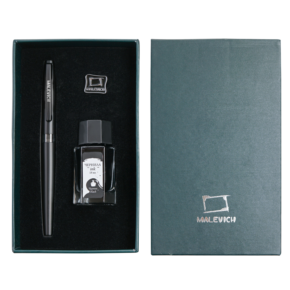 Перьевая ручка с конвертером «Малевичъ» — идеальный выбор для ценителей классических письменных принадлежностей. Дизайн ручки совмещает в себе вековые традиции, современную технологичность и качество. Ручка «Малевичъ» обладает тончайшим пером EF – толщина линии 0,4 мм. Таким пером можно создавать тонкие четкие линии, а почерк будет изящнее. Перо стальное средней жесткости будет удобно и для письма, так и для скетчинга и каллиграфии. Идеально сбалансированная и легкая перьевая ручка Малевич обеспечивает комфорт руки даже при длительном письме. Ручка имеет универсальный поворотный конвертер, который можно легко заправить чернилами, оставляя руки чистыми. Благодаря конвертеру можно быстро и качественно промыть пишущий узел ручки, что важно перед сменой цвета чернил. Чтобы заправить ручку необходимо: Раскрутить корпус ручки, Проверить плотность прилегания конвертера с перьевым блоком, спустить вниз поршень, покрутив верхнюю часть конвертера – таким образом избавиться от лишнего воздуха, Погрузить перо ручки в чернила (перо должно быть погружено в чернила наполовину своей длины), Поднимите поршень – чернила начнут заполнять капсулу конвертера. Если не получилось заправить ручку с первого раза, повторите все действия снова, возможно, нужно погрузить перо чуть глубже (но не утопив корпус). После заправки протрите аккуратно салфеткой излишки чернил. Закрутите корпус и ручка готова. Так как заправка происходит через перо, то не придется ждать поступления чернил на кончик пера, в отличие от использования картриджей.