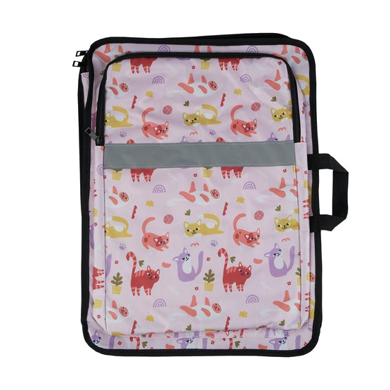 Папка-рюкзак из водонепроницаемого полиэстера Оксфорд с наружным карманом на молнии предназначена для переноски и хранения бумаги, рисунков и художественных принадлежностей. Папку можно носить в руке, а также на спине как рюкзак с помощью регулируемых лямок. В основной карман папки поместится бумага формата А3, внутри предусмотрены резинки, которые помогут удерживать бумагу в ровном положении. В сумке есть пластиковая подложка, благодаря которой рисунки и бумага не помнутся при транспортировке. Краски, кисти, карандаши и остальные необходимые художнику вещи идеально поместятся во внешний карман на молнии. На внешней стороне папки предусмотрен светоотражающий элемент. Папка не боится влаги и легко отстирывается от загрязнений, а яркие расцветки будут привлекать внимание и радовать художника при использовании. Благодаря размеру, карманам и удобным лямкам папка-рюкзак идеально подойдет для пленэров и детских художественных занятий. Длина 50 см, ширина 37 см, формат бумаги А3.