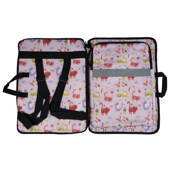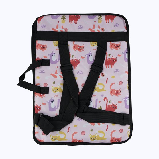 Папка-рюкзак из водонепроницаемого полиэстера Оксфорд с наружным карманом на молнии предназначена для переноски и хранения бумаги, рисунков и художественных принадлежностей. Папку можно носить в руке, а также на спине как рюкзак с помощью регулируемых лямок. В основной карман папки поместится бумага формата А3, внутри предусмотрены резинки, которые помогут удерживать бумагу в ровном положении. В сумке есть пластиковая подложка, благодаря которой рисунки и бумага не помнутся при транспортировке. Краски, кисти, карандаши и остальные необходимые художнику вещи идеально поместятся во внешний карман на молнии. На внешней стороне папки предусмотрен светоотражающий элемент. Папка не боится влаги и легко отстирывается от загрязнений, а яркие расцветки будут привлекать внимание и радовать художника при использовании. Благодаря размеру, карманам и удобным лямкам папка-рюкзак идеально подойдет для пленэров и детских художественных занятий. Длина 50 см, ширина 37 см, формат бумаги А3.
