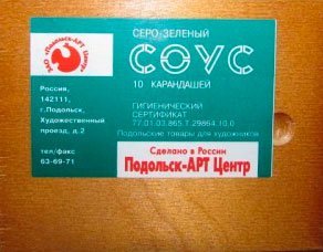 Набор соусов, готовится из глины Часов-Яра, мела и красящего пигмента, а также других добавок. 10 карандашей. Цвет серо-зеленый. Упаковка: деревянный пенал.