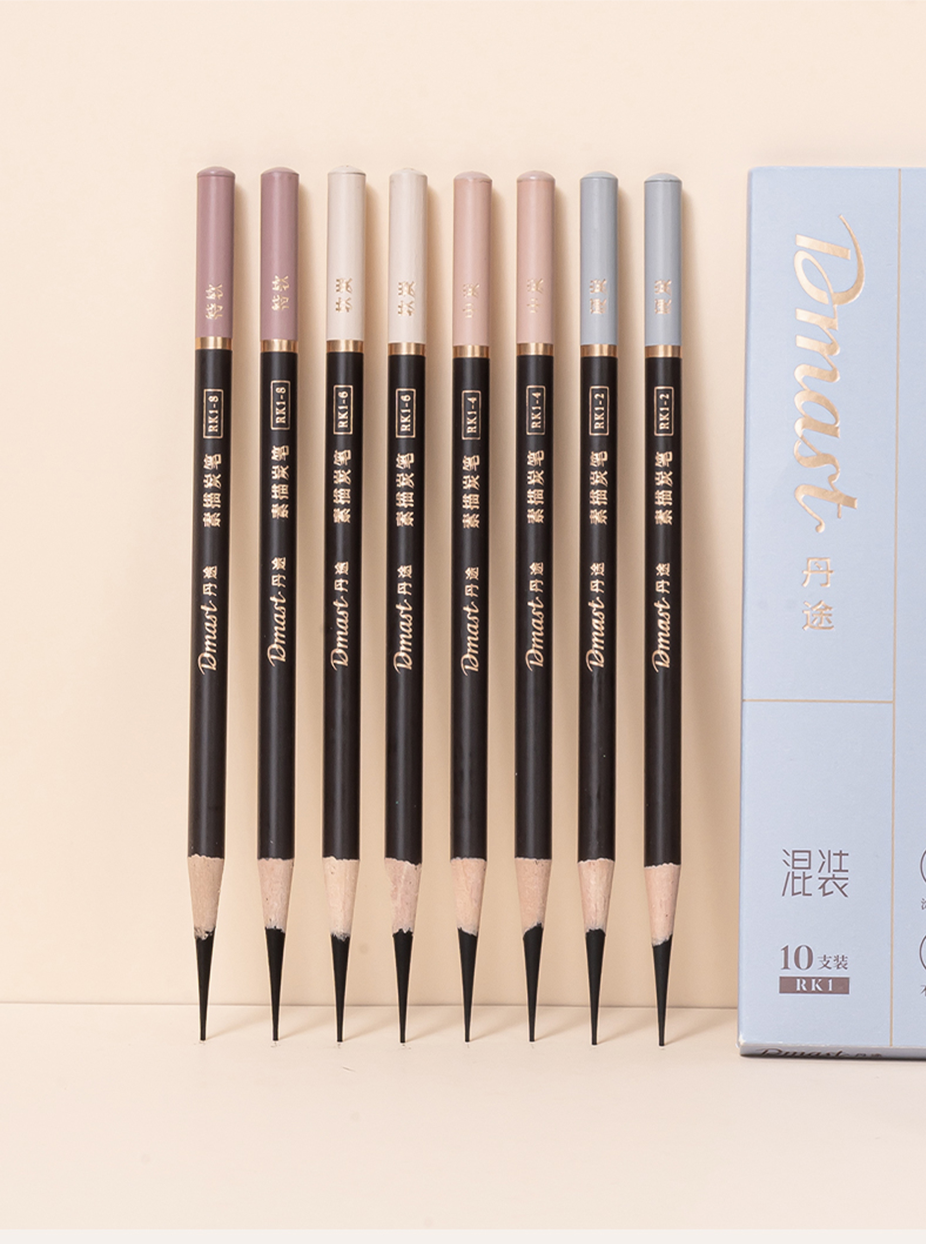 Угольные карандаши Dmast предназначены для набросков и графики. Каждый стержень подвергается обжигу при температуре в 600 °C, чтобы достичь более насыщенного и выраженного эффекта. В наборе 10 карандашей, четырёх видов твердости (2 Hard, 2 Medium, 3 Soft & 3 Super soft) Продукция бренда Dmast создана благодаря сочетанию высокого качества выверенных технологий бренда Pebeо и инновационным производственным процессам компании Deli — крупнейшего производителя канцелярских товаров в Азии.