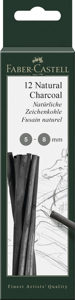 Натуральный уголь изготовлен из буковых или вербных веточек. Отличается насыщенным и равномерным черным цветом с синеватым оттенком. Уголь - это быстрый, линейный и чувственный рисовальный инструмент. Он может создать как выразительные, так и мягкие линии. Характер и воздействие угольного штриха определяется способом ведения угля. Углем можно создавать мягкие и проработанные тоновые эффекты различными способами.