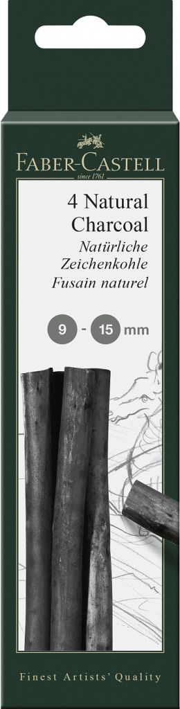 Натуральный уголь изготовлен из буковых или вербных веточек. Отличается насыщенным и равномерным черным цветом с синеватым оттенком. Уголь - это быстрый, линейный и чувственный рисовальный инструмент. Он может создать как выразительные, так и мягкие линии. Характер и воздействие угольного штриха определяется способом ведения угля. Углем можно создавать мягкие и проработанные тоновые эффекты различными способами.