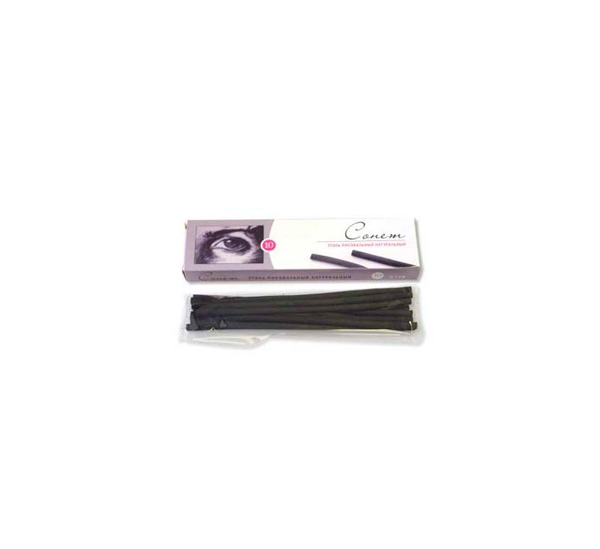 О серии: натуральный уголь «Сонет» представляет собой круглые грифели (угольные палочки) различного диаметра. Производится методом специального обжига, при котором древесина сохраняет свою структуру. Выпускается в различных наборах. Характеристика: имеет мягкую структуру, с лёгкостью наносится на холсты, бумагу, картон и другие поверхности. При необходимости легко удаляется мягким ластиком или клячкой. Применение: может использоваться не только для создания набросков и эскизов, но и как самостоятельное выразительное художественное средство. Производство: изготавливается в Польше под жестким контролем качества.