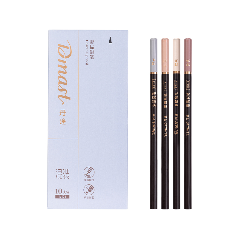 Угольные карандаши Dmast предназначены для набросков и графики. Каждый стержень подвергается обжигу при температуре в 600 °C, чтобы достичь более насыщенного и выраженного эффекта. В наборе 10 карандашей, четырёх видов твердости (2 Hard, 2 Medium, 3 Soft & 3 Super soft) Продукция бренда Dmast создана благодаря сочетанию высокого качества выверенных технологий бренда Pebeо и инновационным производственным процессам компании Deli — крупнейшего производителя канцелярских товаров в Азии.