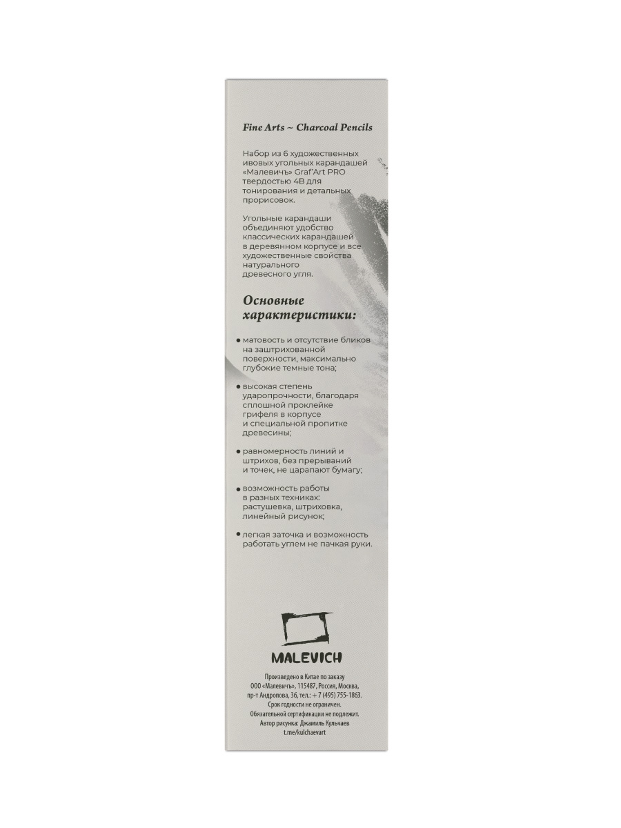 Набор ивовых угольных карандашей Малевичъ Graf'Art PRO представляет собой превосходное сочетание качества и удобства в использовании. В комплекте вы получаете 6 карандашей, которые станут незаменимым инструментом для художников и любителей рисования. Благодаря ивовому стержню, карандаши обладают высокой прочностью и долговечностью. Это позволяет использовать их для создания самых разнообразных рисунков и эскизов. Малевичъ Graf'Art PRO предлагает широкий спектр возможностей для творчества. С помощью этих карандашей вы сможете создавать как тонкие и четкие линии, так и насыщенные и яркие штрихи. Набор угольных карандашей Малевичъ Graf'Art PRO станет отличным выбором для тех, кто ценит качество, удобство и функциональность в своем творчестве.