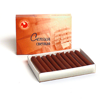Набор сепии, выпускаемой на основе знаменитой глины из Часов-Яра. 10 карандашей. Цвет светлый. Упаковка: картонная коробка.