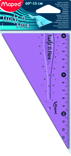 Гибкий не ломающийся угольник Maped - это не только необходимый в учебе предмет, но и легкий способ привлечь ребенка к процессу обучения. Выполнен из прозрачного цветного пластика с ровной четкой миллиметровой шкалой делений 15 см. Угол 60 градусов.